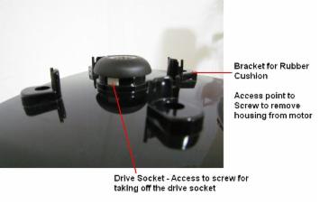 - Turn the blender left - side ways. You will see a white rubber piece where you need to access the drive socket screw - pull this white rubber piece off carefully. You will need to reuse this part. It keeps the water out of the motor housing.